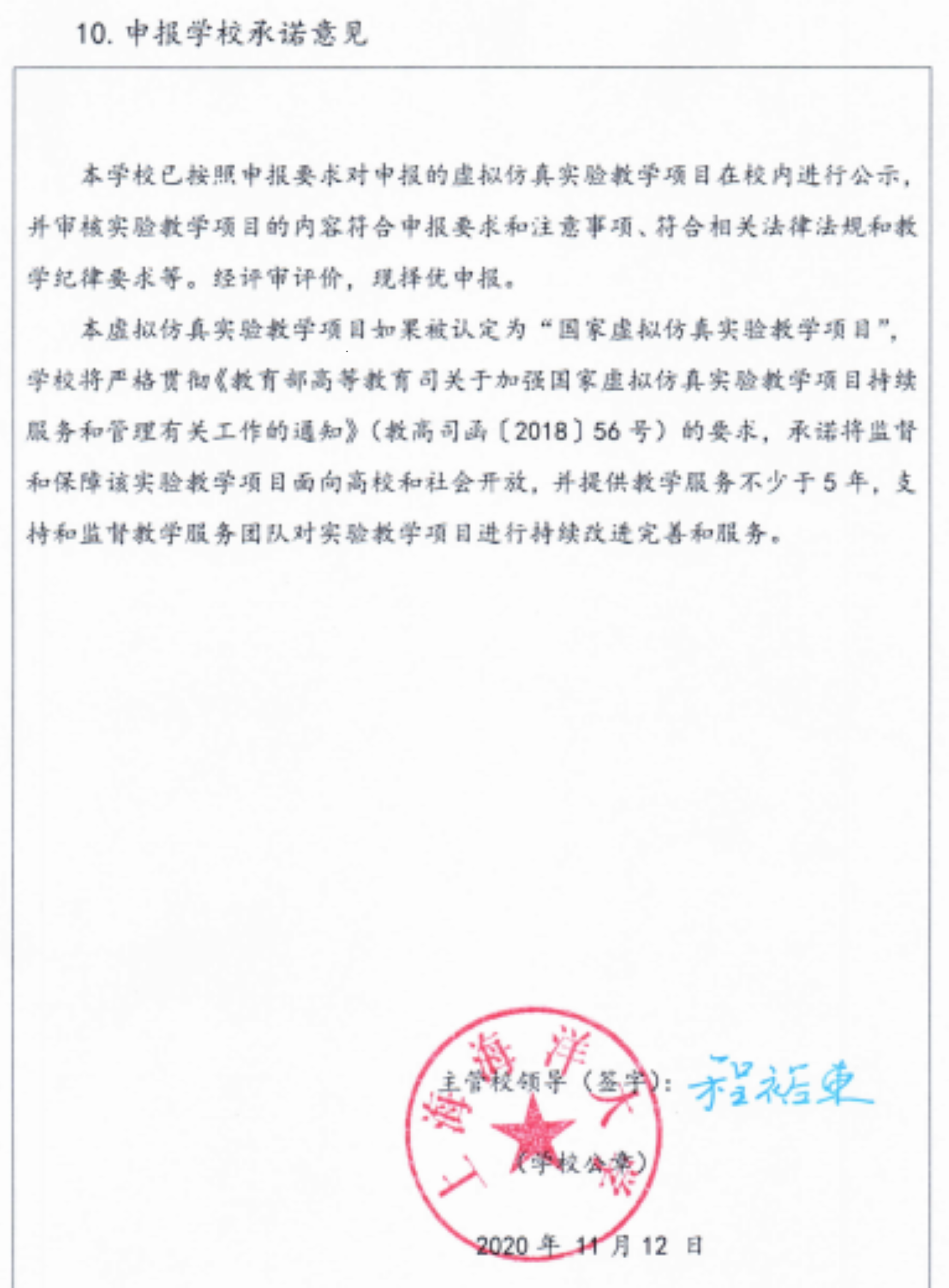 承诺意见